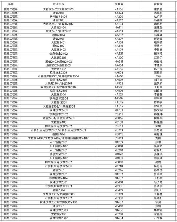 为进一步加强校园宿舍文化建设,营造安全、文明、和谐、温馨的学习生活环境,充分发挥学生宿舍育人阵地作用,激励同学们共同打造优质宿舍生活空间,树立先进典型,以榜样力量带动全体学生共同提升宿舍文明水平。对此,信息工程系自律委员会开展星级文明宿舍评选活动,并经过多轮筛选,最终有55个宿舍脱颖而出,以下为本次获奖宿舍名单: