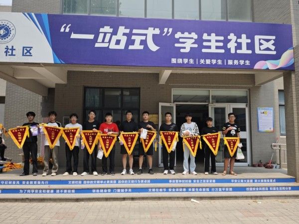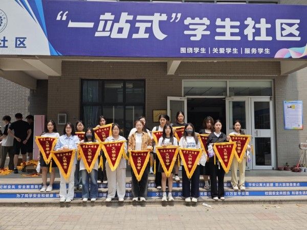 5月21日中午,阳光明媚,在正心楼社区门口,为获奖宿舍颁发流动红旗及奖品。