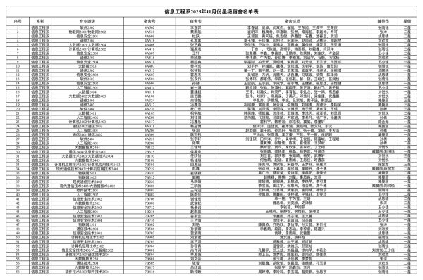 为深入推进校园文明建设,强化宿舍管理规范化,营造安全有序、整洁和谐的宿舍环境,信息工程系自律委员会于11月组织开展了星级文明宿舍评选活动。经多轮严格评审,一批在内务、安全、纪律等方面表现优异的宿舍脱颖而出。以下是成功获评星级文明宿舍称号获奖名单如下: