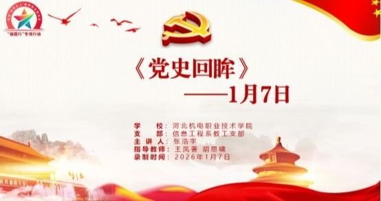 在系党总支的领导下,信息工程系教工党支部和学生党支部密切合作,协同育人,凝聚青年力量共同打造“《党史回眸》每日一讲”系列党课。2025年,1月7日,信息工程系教工党支部书记王凤著和学生党支部书记胡思啸共同指导预备党员张浩宇,推出《党史回眸—1月7日》视频党课。