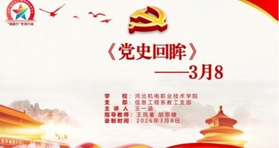 在系党总支的领导下,信息工程系教工党支部和学生党支部密切合作,协同育人,凝聚青年力量共同打造“《党史回眸》每日一讲”系列党课。2026年03月8日,信息工程系教工党支部书记王凤著和学生党支部书记胡思啸共同指导预备党员王一涵,推出《党史回眸—03月8日》视频党课。