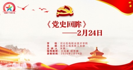 在系党总支的领导下,信息工程系教工党支部和学生党支部密切合作,协同育人,凝聚青年力量共同打造“《党史回眸》每日一讲”系列党课。2026年2月24日,信息工程系教工党支部书记王凤著和学生党支部书记胡思啸共同指导预备党员宋爽,推出《党史回眸—2月24日》视频党课。