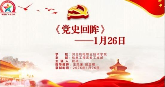 在系党总支的领导下,信息工程系教工党支部和学生党支部密切合作,协同育人,凝聚青年力量共同打造“《党史回眸》每日一讲”系列党课。2026年1月26日,信息工程系教工党支部书记王凤著和学生党支部书记胡思啸共同指导预备党员程硕,推出《党史回眸—1月26日》视频党课。