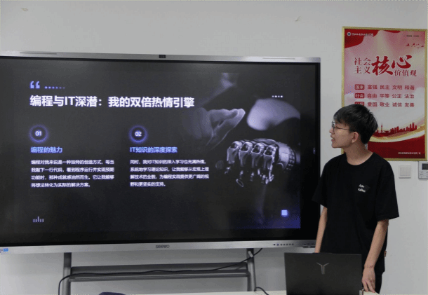 接下来,在自我介绍环节中,同学们通过AI数字人视频、PPT等多种形式开展自我介绍,积极分享自己的技术特长、兴趣爱好等信息。从分享中可以感受到同学们的热情,增进了彼此之间的了解。同学们精彩的自我介绍结束后,来到了小游戏互动环节,通过趣味游戏,提高了团队凝聚力。
