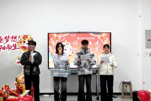 2025年12月31日,为迎接2026新年的到来,联想数字化技术工程创新班与东软智能体开发工程创新班联合举办元旦年会活动。本次年会以“码上逐光,智启新章”为主题,旨在回望攻坚克难、收获颇丰的奋斗之路,缓解备赛压力,同时携手展望未来,共赴充满希望的新征程。