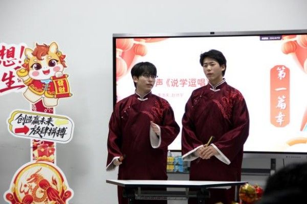 才艺展演环节在《爵士串烧》的动感舞步中热烈开场。紧接着,相声《元旦说学》妙语连珠、笑声不断;歌曲《我只在乎你》《我们两》《38°6》《Childhood》将“逐光”的初心寄于旋律之中;舞蹈《蔚蓝海岸》《天下》以优美舞姿与飒爽节奏点燃全场青春气场;压轴小品《领养日》更是笑点频出,掌声连连。