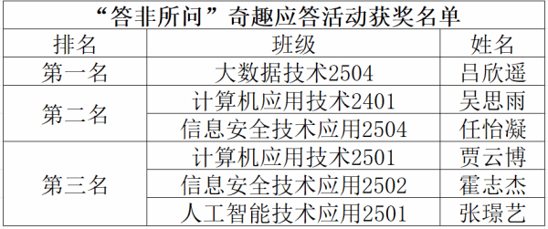 这次“答非所问”活动,不仅是一场语言的游戏,更是一次心灵的放松之旅,还让同学们在欢声笑语中锻炼了思维的灵活性,增进了彼此之间的友谊。