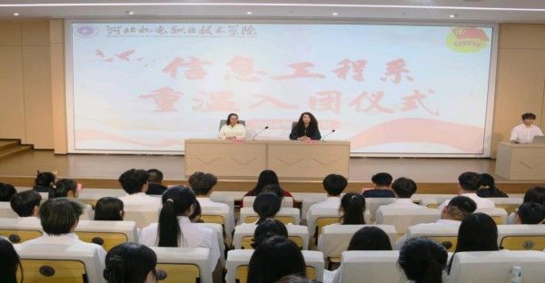 为加强共青团组织建设,增强团员青年的光荣感与使命感,信息工程系于2026年1月8日在德龙报告厅举行重温入团仪式。本次活动由系党总支副书记刘云、系团总支书记胡思啸、辅导员老师及新老团员参加。会议由团总支组织部委员沈思彤主持。